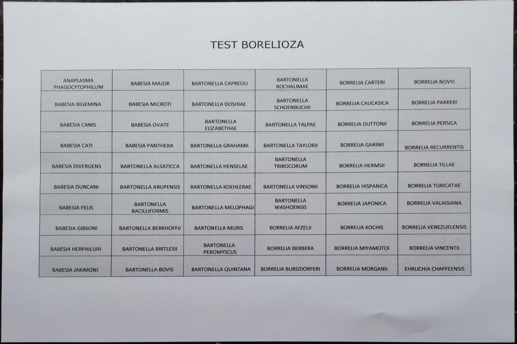 • wykryć obciążenia boreliozą i koinfekcjami (np. bartonella, babesia, ehrlichia)
